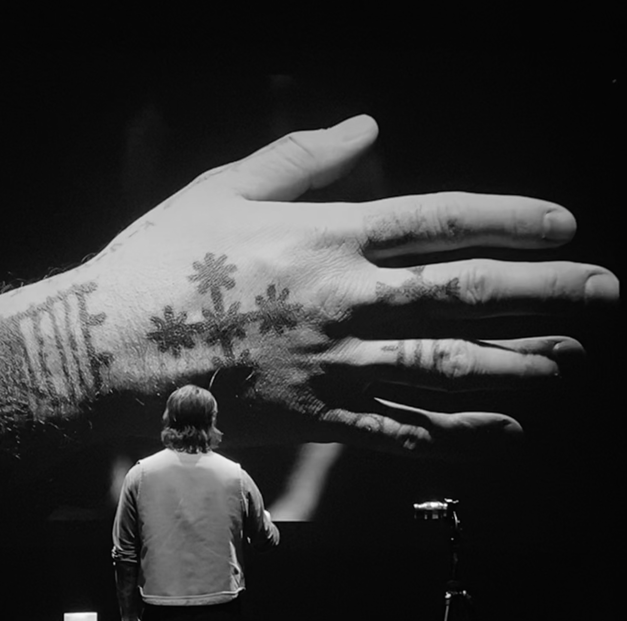 Actions derived from tattooing — tracing, vibration, sustained contact — are used to activate the body. Once opened, the body begins to disperse across layers of mediation. Sound, video, painting, and gesture receive and deform its presence, producing distance, noise, and abstraction. What begins as a singular physical source gradually exits itself, becoming trace, echo, and residue.